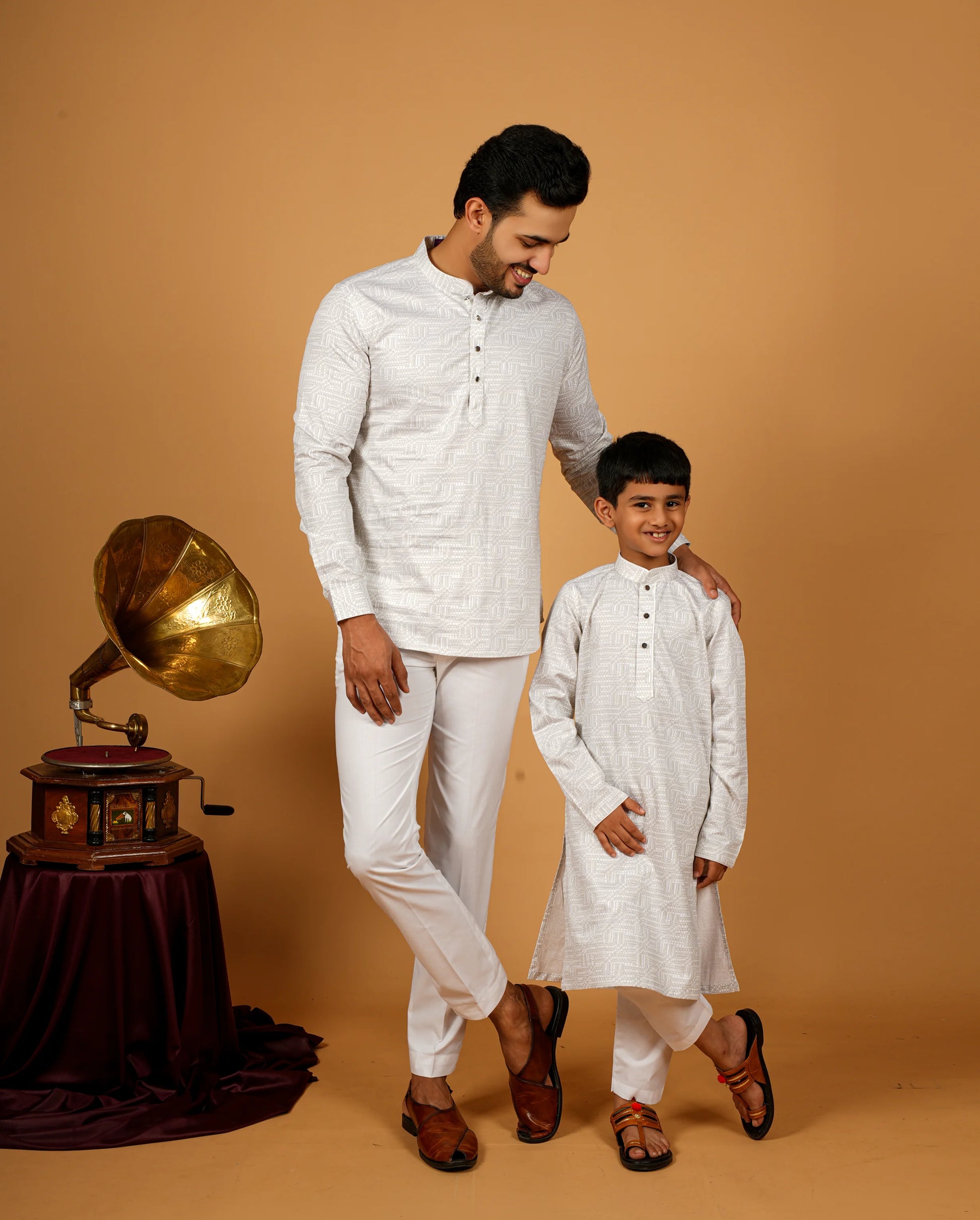 Available in the unique White color, this kurta is a must-have for every father and son duo. Ideal for festive events, family gatherings, or any special occasion, the kurta is your go-to choice for a stylish and coordinated look. Don't miss out on this exclusive piece that combines traditional craftsmanship with modern style.