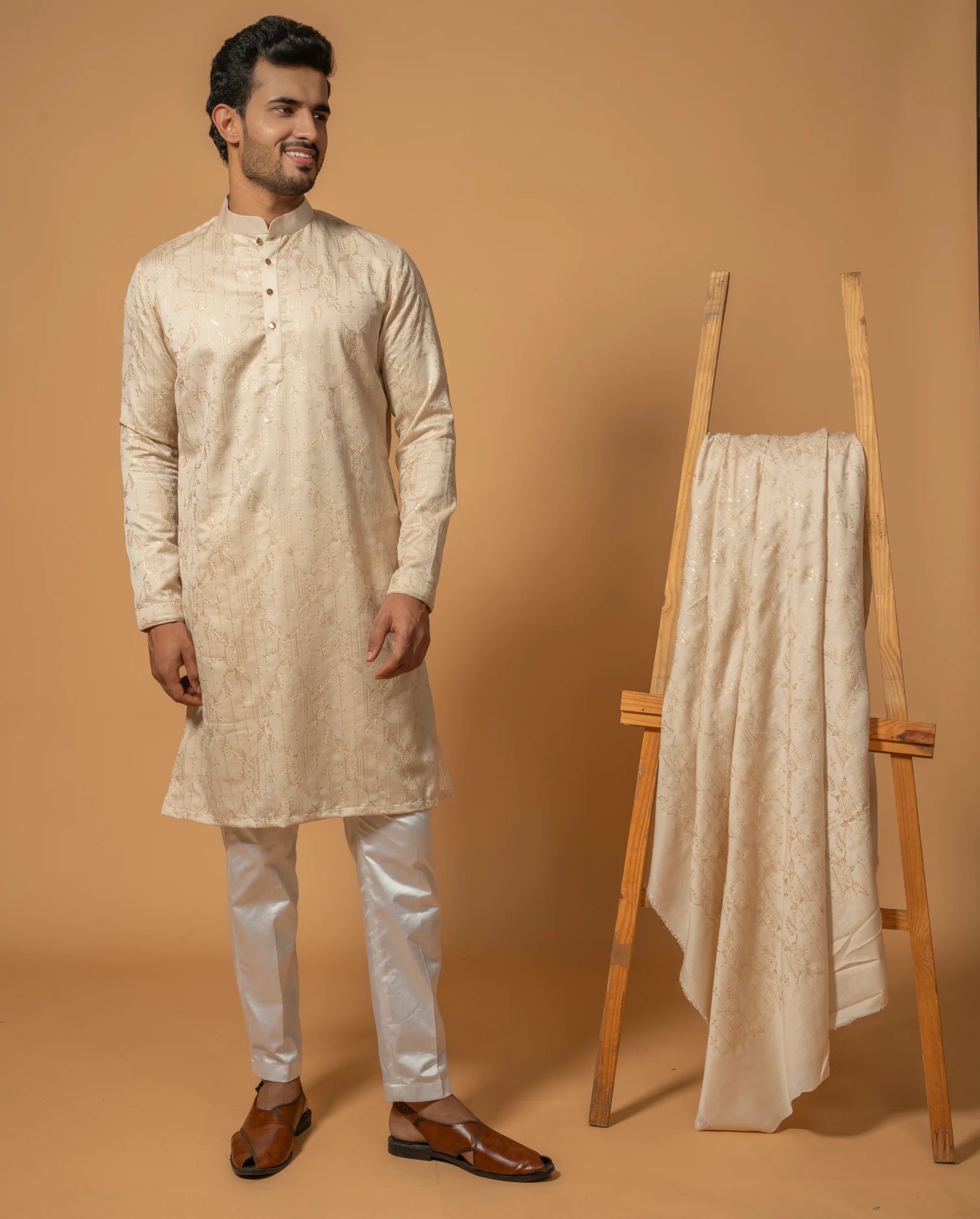 The matching churidar pajama completes the elegant look. Perfect for Diwali, Eid, Navratri, and engagement ceremonies, this men's ethnic wear set offers a royal and comfortable feel. Shop now for the latest men's traditional dress!